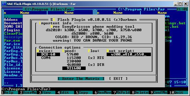 w300_w810_z550_cid49 and press Enter The Matrix. I] After some time you should be in the file system of the phone, if not, try again, check settings above (1, 2, and 3) and make sure you have chosen the right settings. J] Now choose FS (this is the place where you customize all